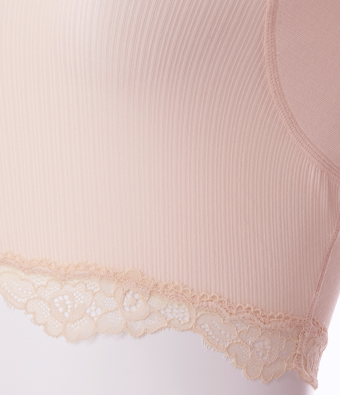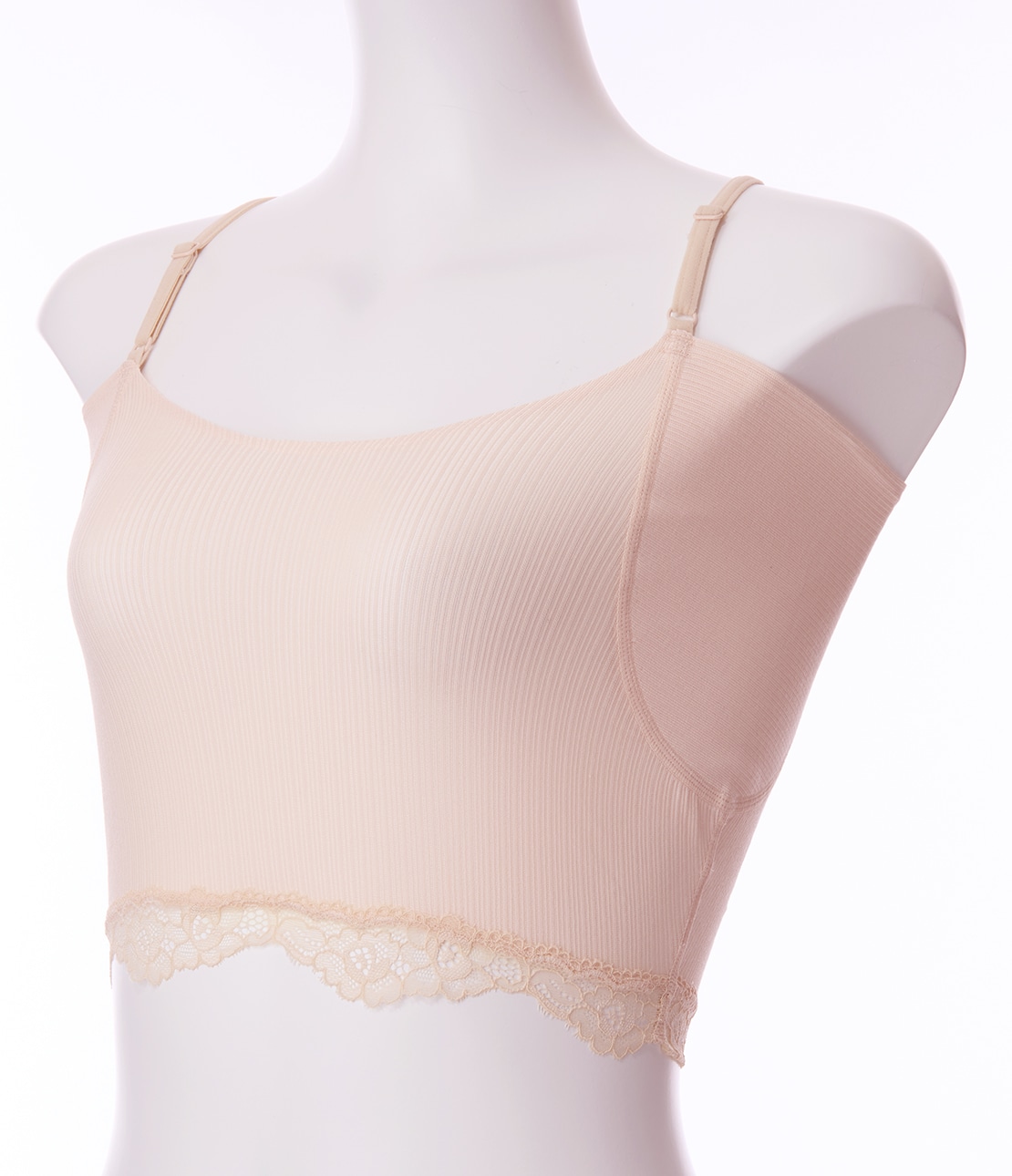 ・フロントのネックラインはゆるやかなラウンドカット。接着仕様で、洋服に段差がひびきにくい