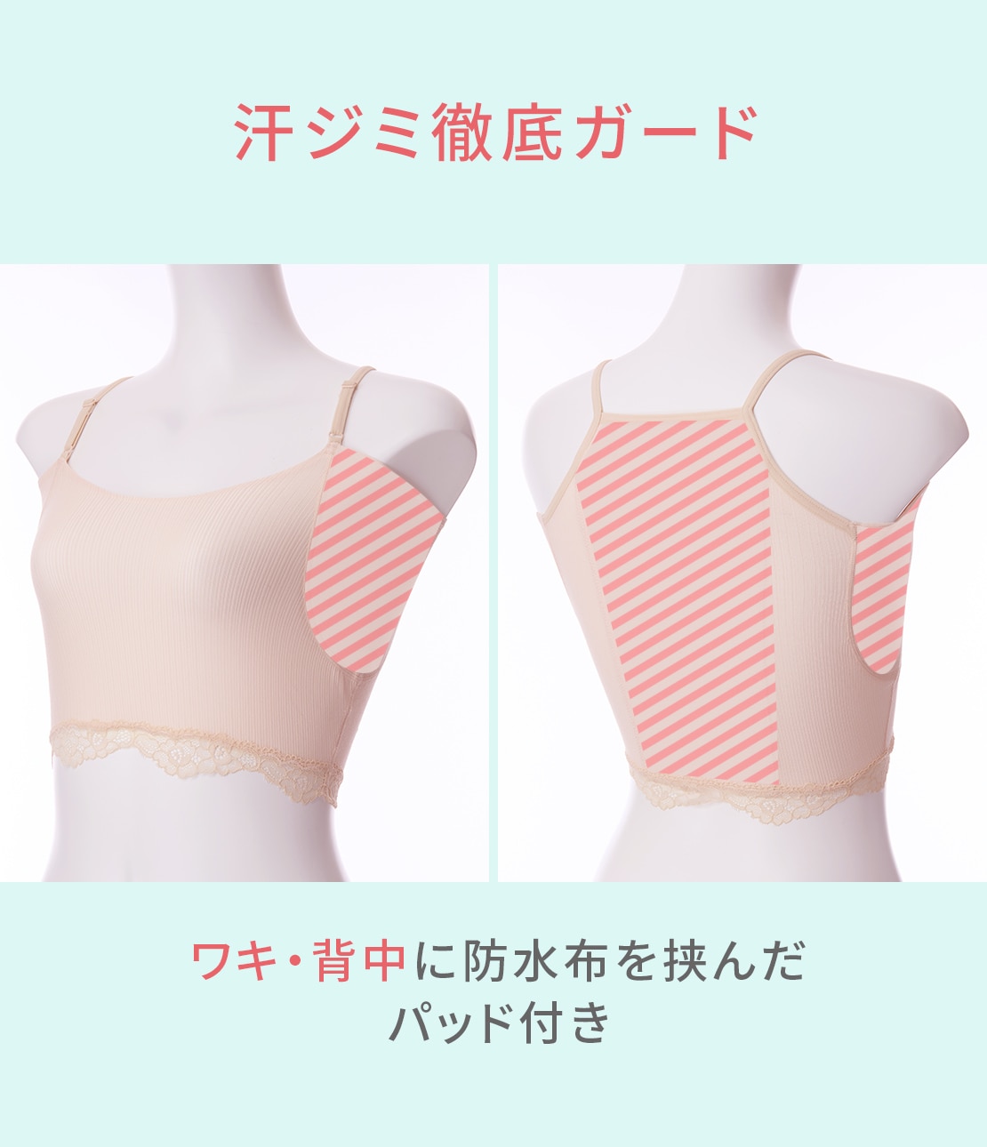 滝汗さん必見!吸水速乾&接触冷感、ワキ・背中に汗取りパッド付きショートキャミ。