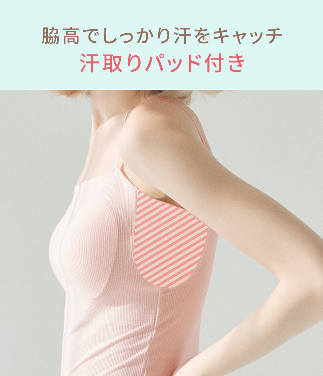 ・ワキに汗取りパッドを搭載した、カップ付きの汗対策キャミソール。