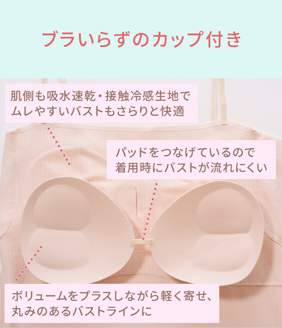 ・ワキに汗取りパッドを搭載した、カップ付きの汗対策キャミソール。
