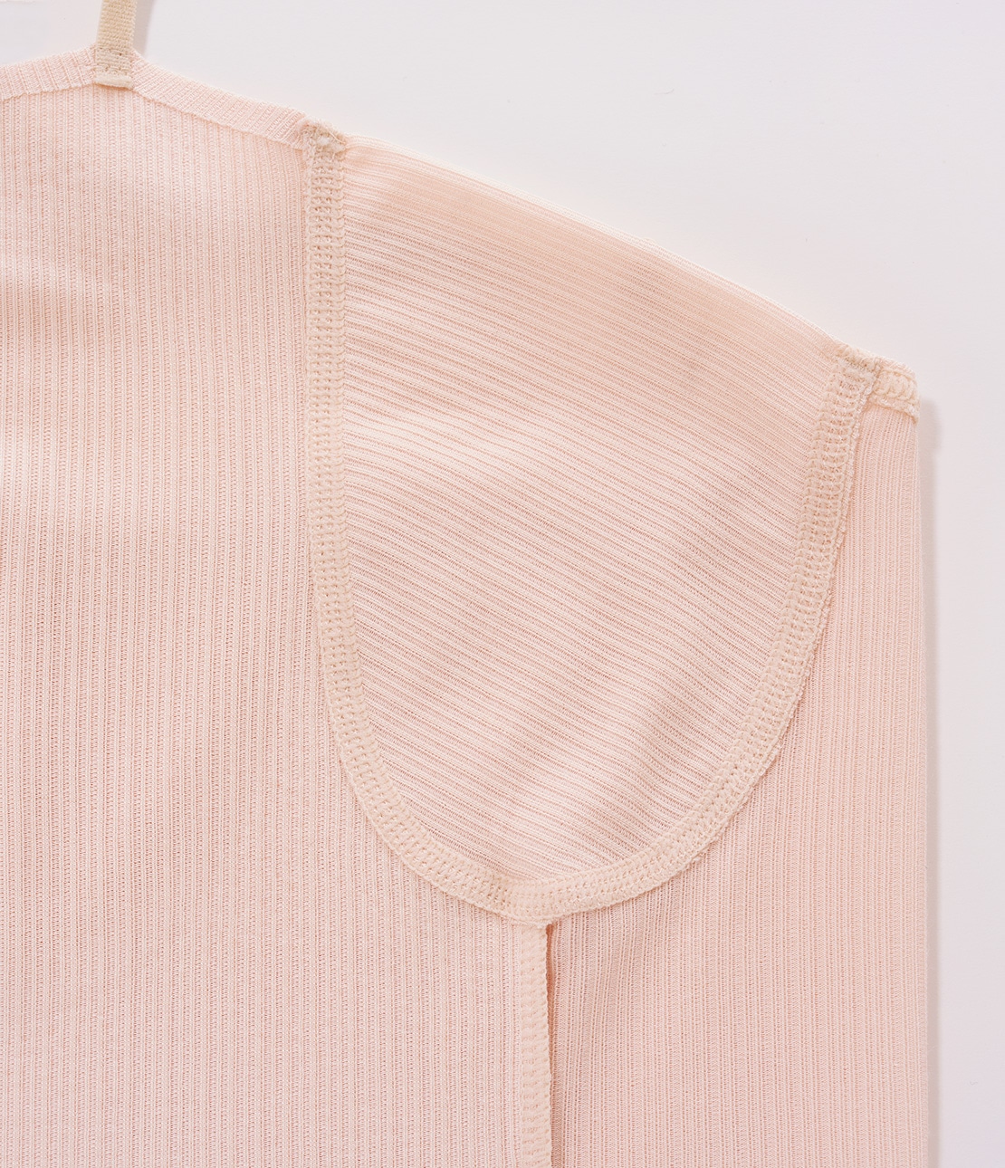 ・表面に凹凸があるため、汗をかいても肌に張りつきにくい。たて方向によく伸びるリブ生地。