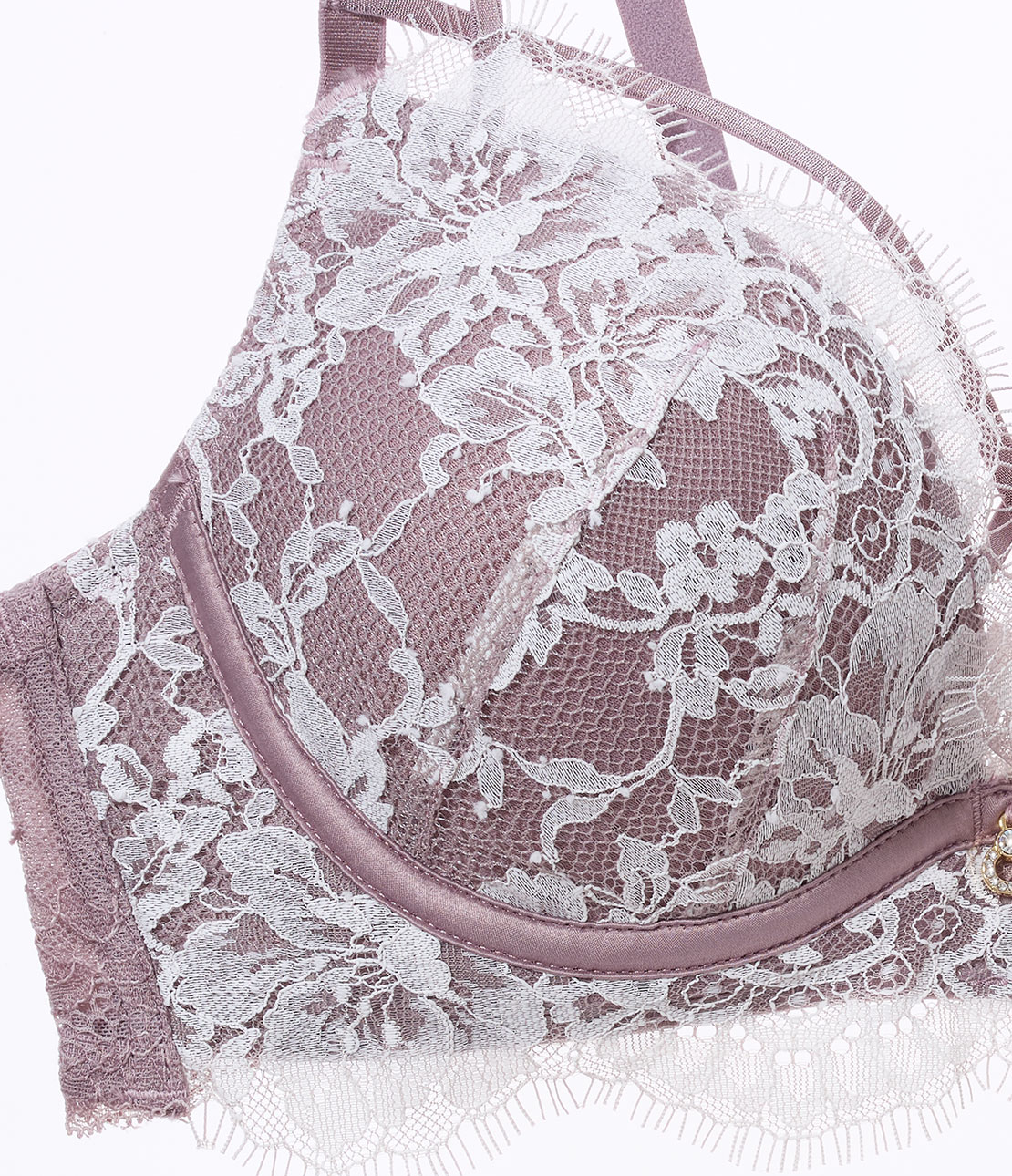 ・カップ上部とアンダーバストは繊細なアイラッシュのスカラップ
