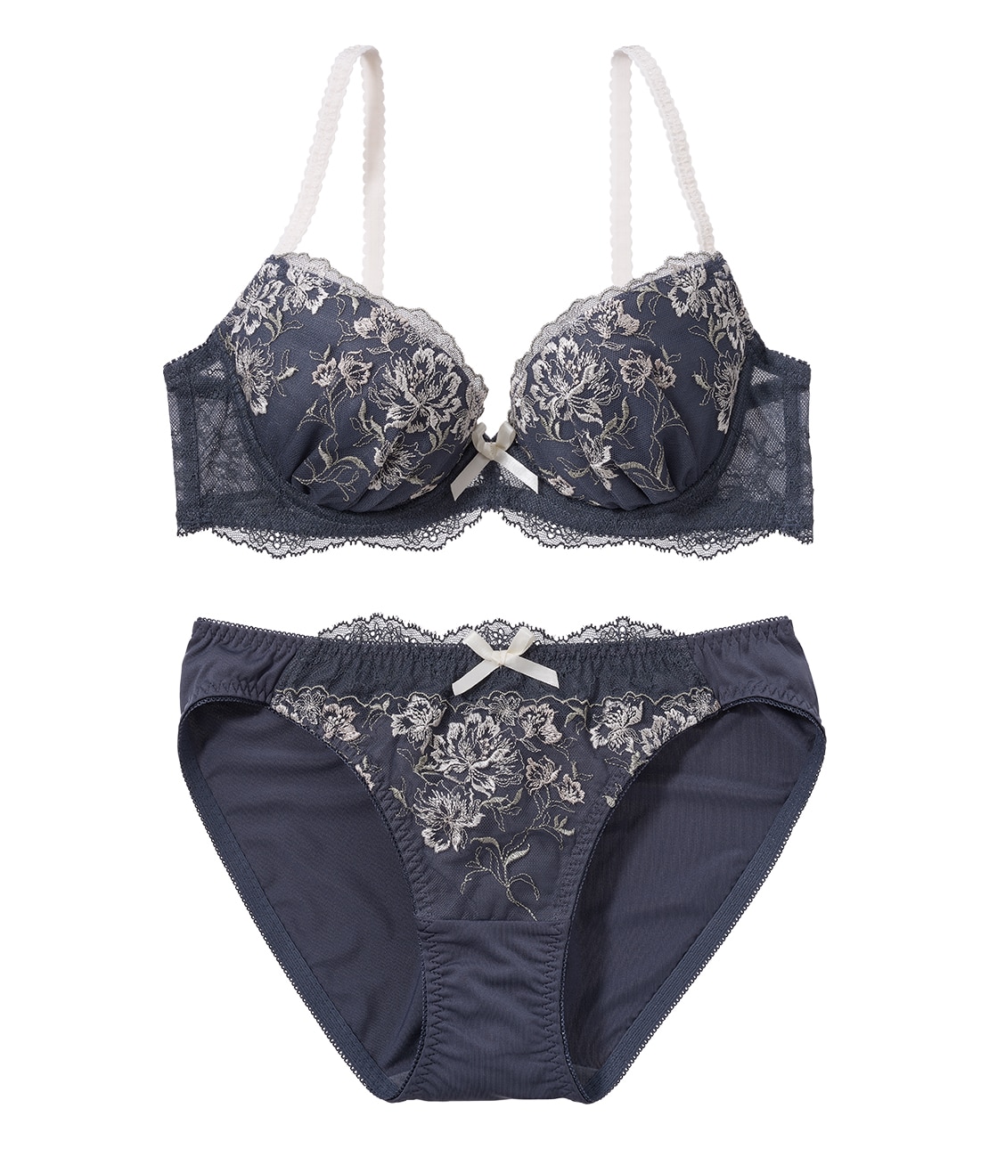 【プチプラ】控えめな配色刺しゅうが上品。普段使いしやすいブラ&ショーツセット。