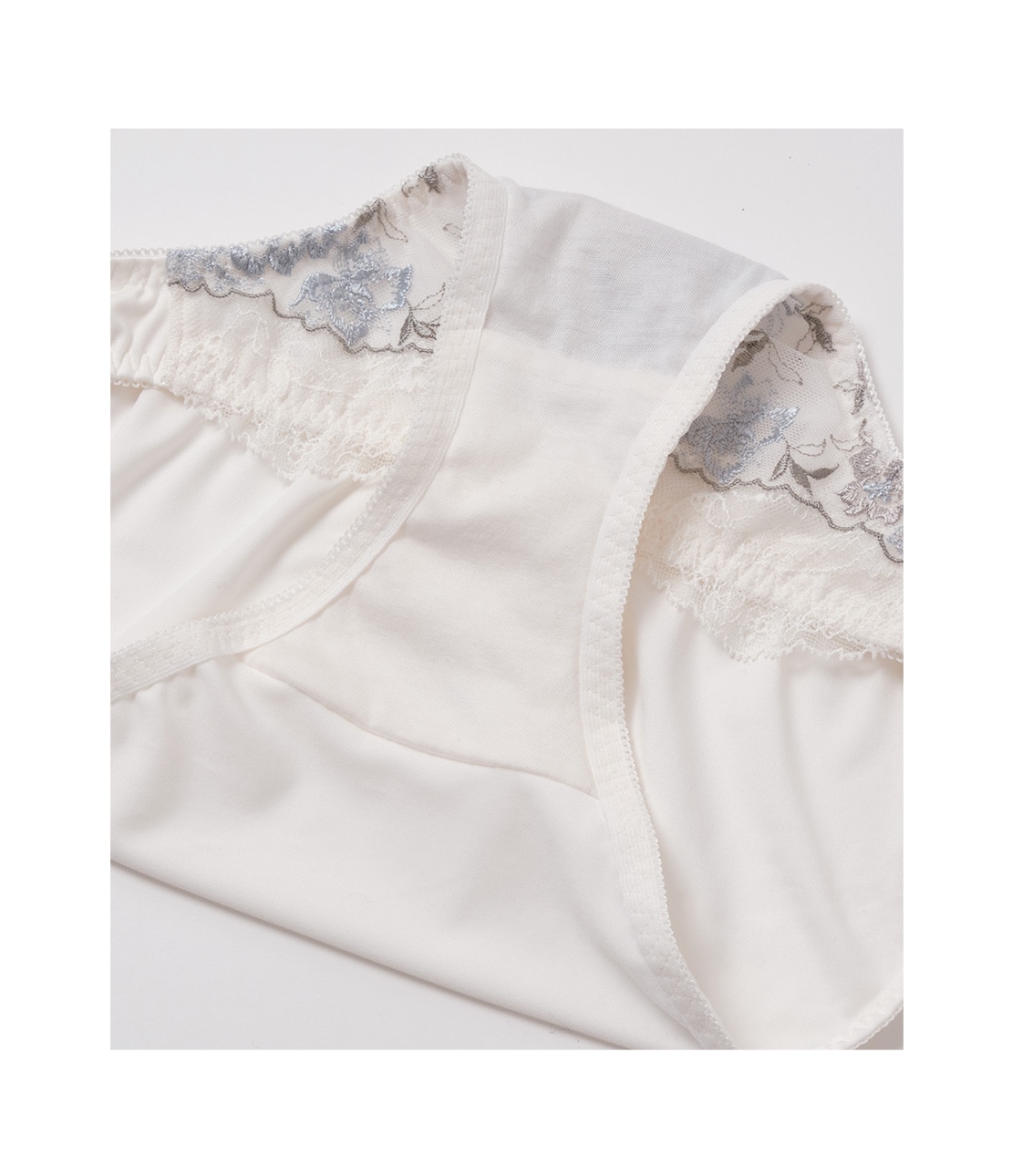・フロントはフラワー柄刺しゅうレースに、コットン混生地を裏打ちして透け感をやわらげる