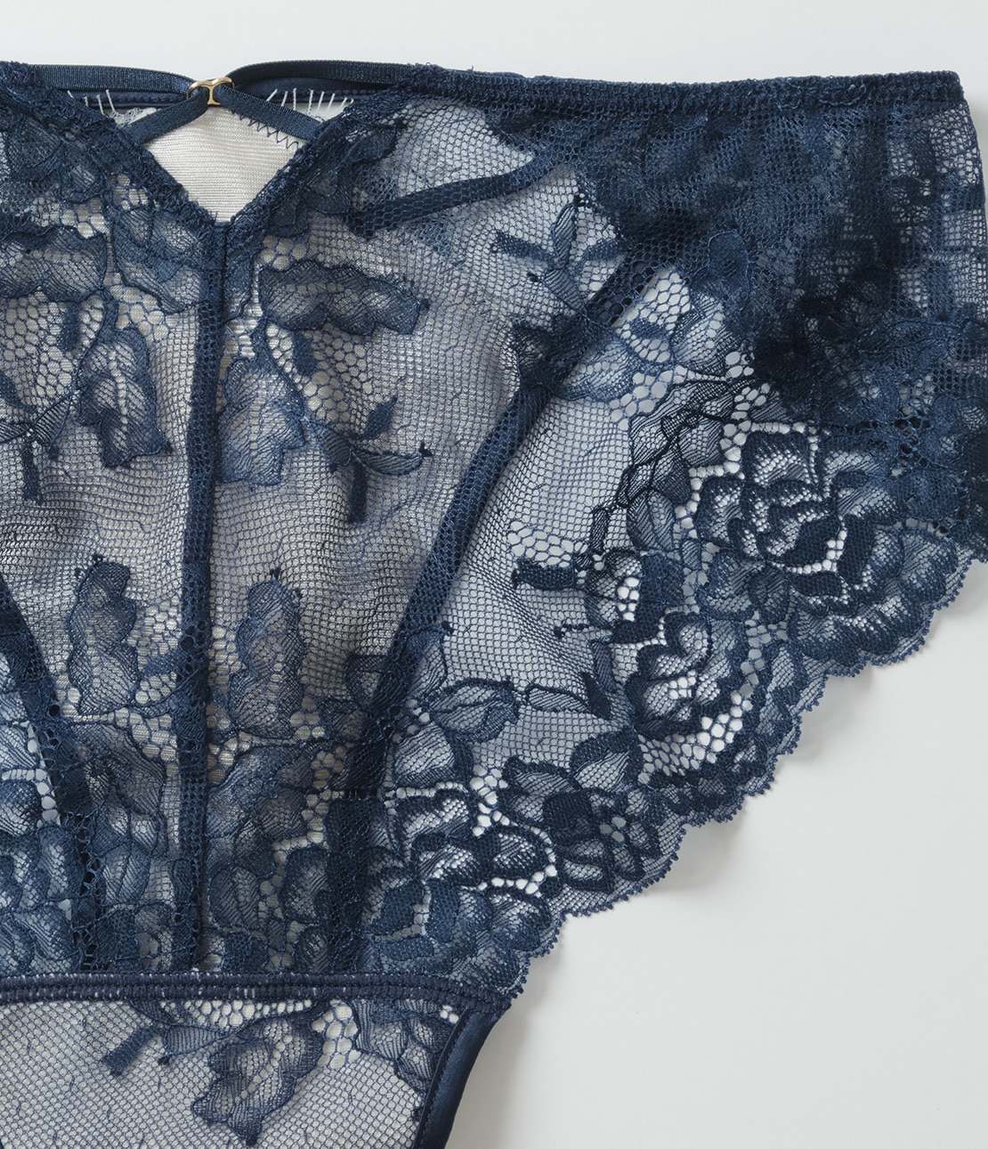 ・フィット感の良い単色のストレッチレース1枚使いで透け感あり。