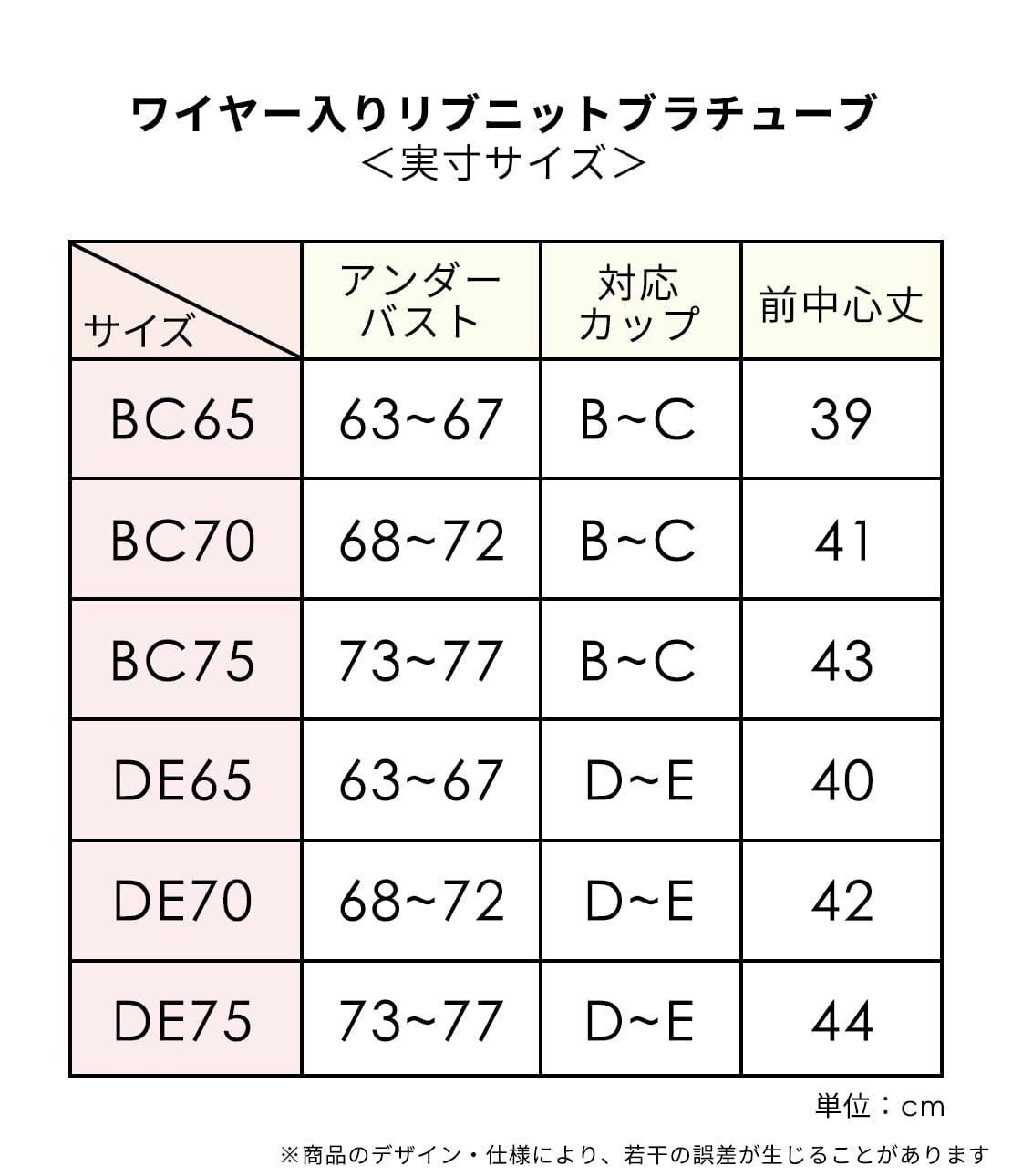 ・BC65~75、DE65は下厚カップで、バストをほど良くボリュームアップ。