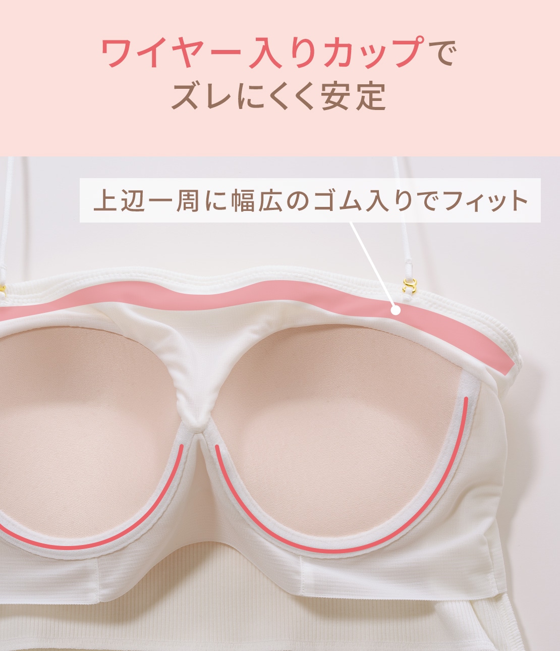 ストラップレスでも着回せる2WAYチューブ。ワイヤー入りカップでズレにくく安定。