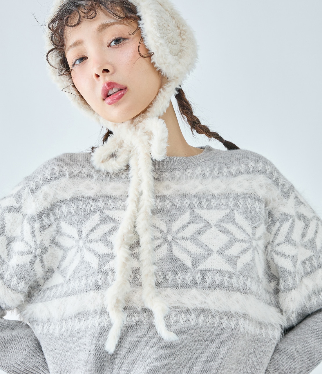 柄部分は長い毛足の糸を使用しているので立体的に。