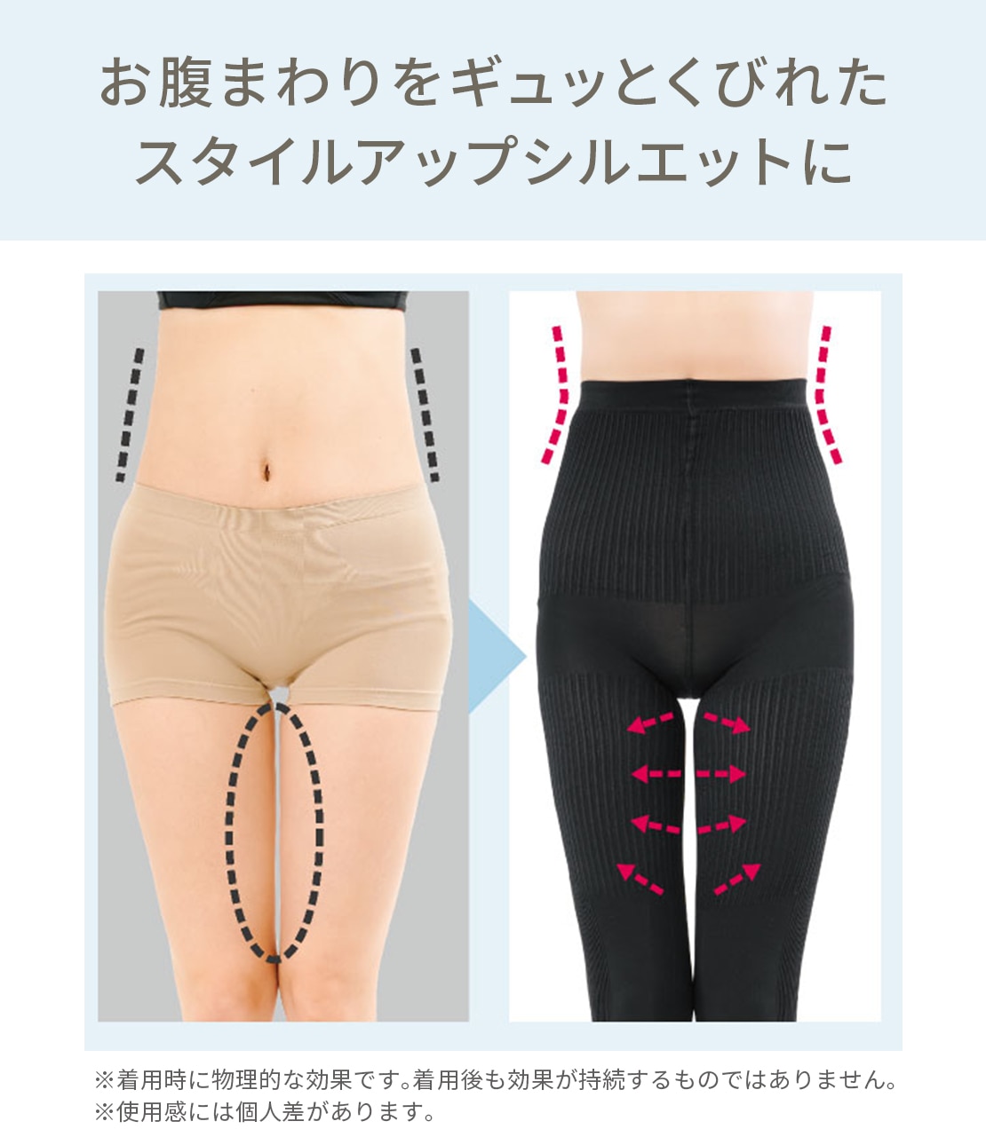 ・ウエスト~おなか:強圧で引き締め、くびれをメイク。