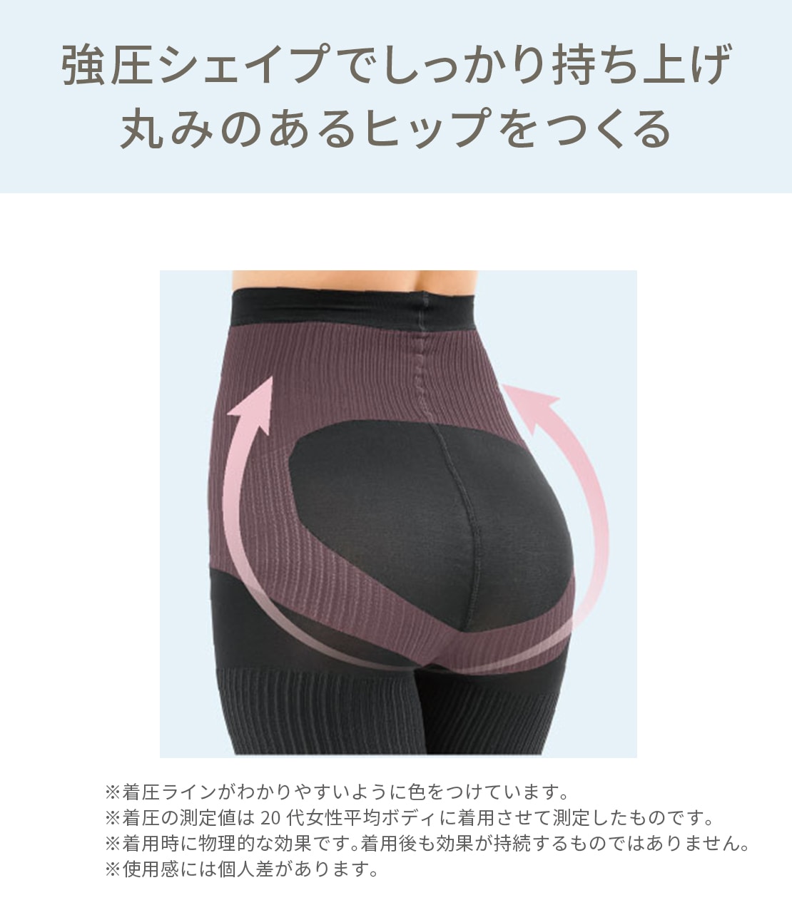 ・ヒップ:ヒップの山を強圧で囲んで持ち上げ、高さのある美尻に。