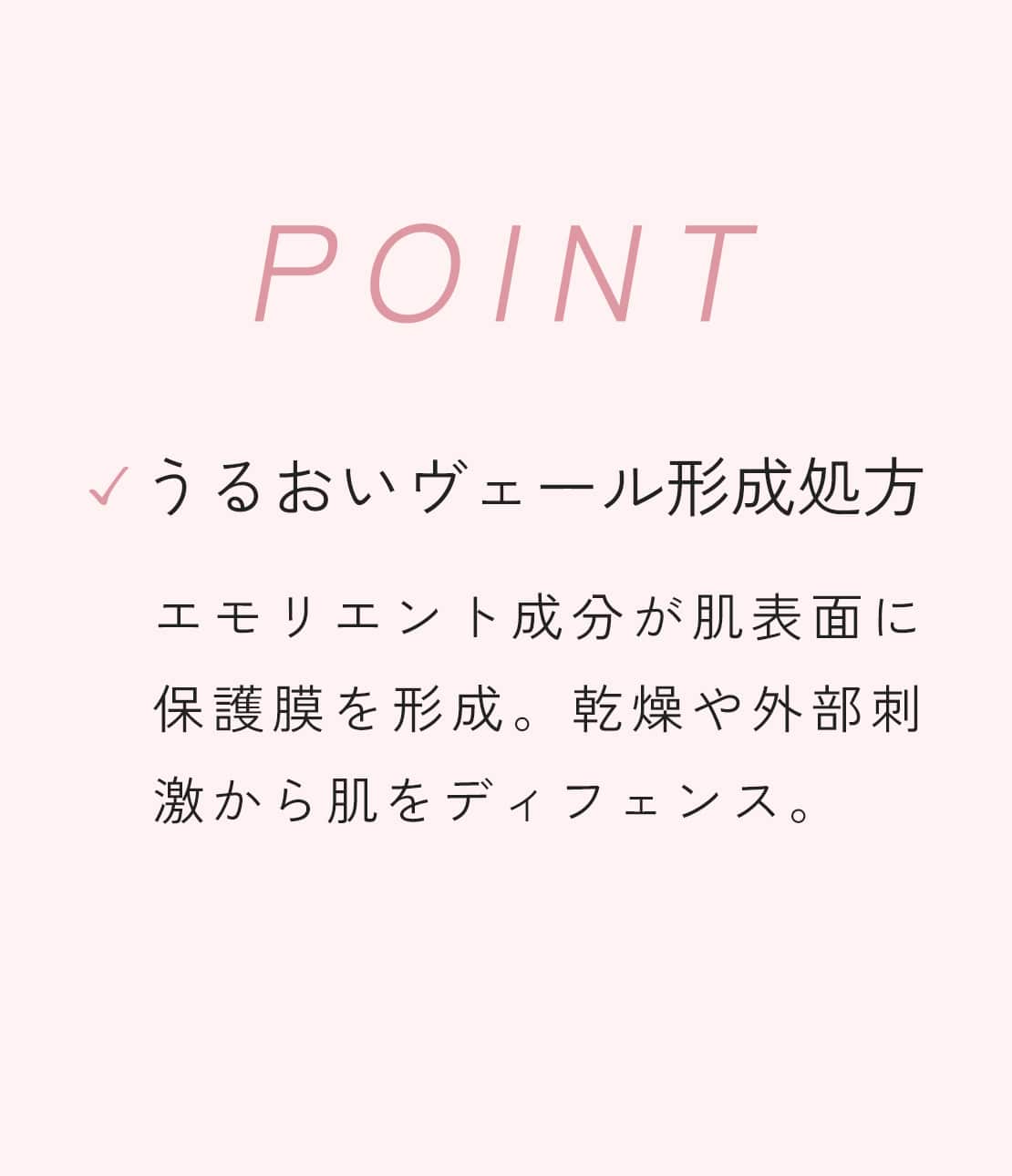 ・保護ヴェールを形成してうるおいをしっかりキープし、肌のバリア機能をサポート。