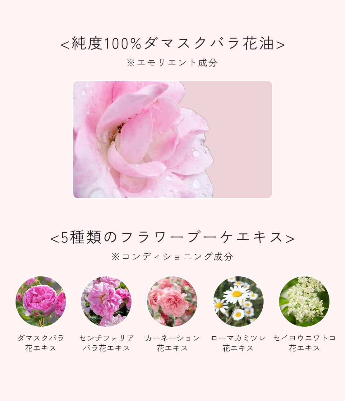 ・純度100%のダマスクバラ花油*1配合。